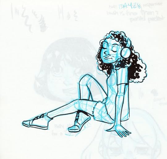 Rather than taking the way too easy route of just drawing Kara every day, I opted to use this as an opportunity to better flesh out Naomi, the other main character of 7" Kara. During April, I discovered that Naomi is an honors student who plays the oboe and is part of the band's color guard during marching season. She likes super shoujo magical girl anime like Precure, and rides a unicycle. She goes for a morning run every day before school because it helps her clear her head, and admires characters who use kindness and wisdom to solve problems. She's in the debate club, likes Nintendo games, and loves to read. Being 14, Naomi is still definitely a bit childish, but it doesn't stop her from making new friends at her new school.