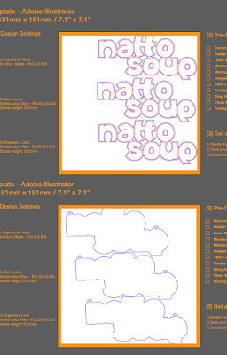 Feedback from Ponoko when I uploaded a file which had lines thicker than 0.01mm. It clearly states the problem and suggests I can simply email their support if I can't figure out the issue myself. A great tool and good service.But the first time I ordered something from Ponoko I did have a brief run-in with their support. I was making 3 Nattosoup necklaces to test out their service. Becca wanted a layered, two material design. The back would be a mirrored acrylic, and the front a green-glass acrylic with etching. The process was straightforward, but I hadn’t read the material instructions. The files passed through the online validator fine because it was technically correct, but when a human inspector saw the files, with NO context other than file names saying back and front, they realized that the blob-like back wasn’t oriented properly for the mirror acrylic.