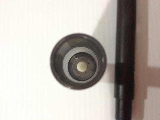 It's a little difficult to photograph the interior of the charging chamber, but it has a nib (not sure what sort of nib, honestly) and a chamber full of colorless blender.