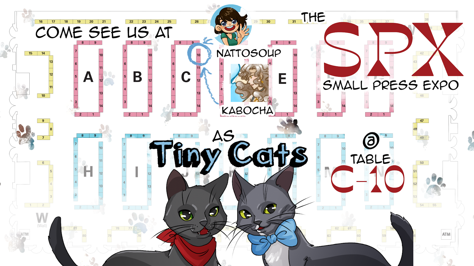 We'll be tabling at C-10 under a pseudonym- Tiny Cats- representing our two gray cats Bowie and Niji. Look for these best boys if you make it to SPX this weekend!