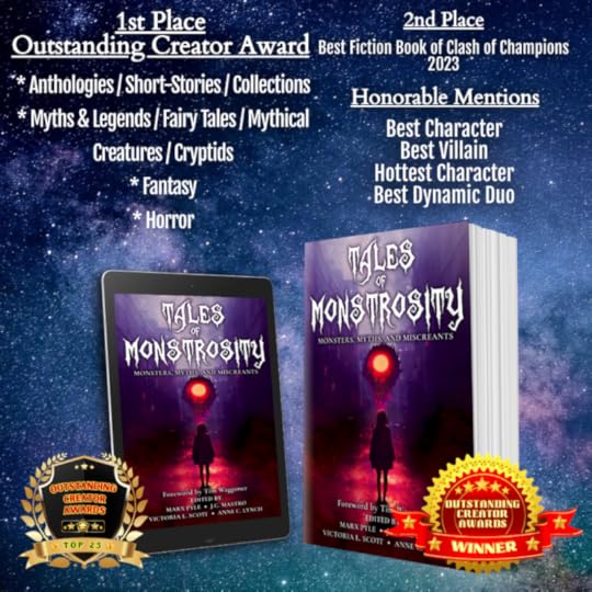 The Outstanding Creator Awards winners were announced and “Tales of Monstrosity: Monsters, Myths, and Miscreants” won multiple awards, including ranking #7 in the top 25 fiction books of the year. Congratulations to all of the authors!
