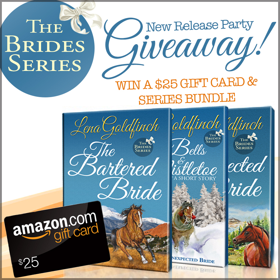 The third place prize is all three books in The Brides series (open internationally).Second place prize is a paperback copy of The Bartered Bride (open to US residents only).And the grand prize is a $25 gift card to Amazon, Barnes and Noble, iBooks, Kobo, or Google Play (winner's choice!) + all three ebooks in The Brides series (open internationally).To enter the giveaway, just fill out the information in the Rafflecopter form below. Winners will be chosen after the end of the blog tour on December 19, 2015.