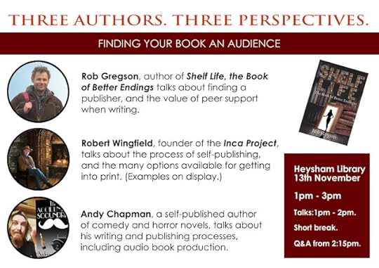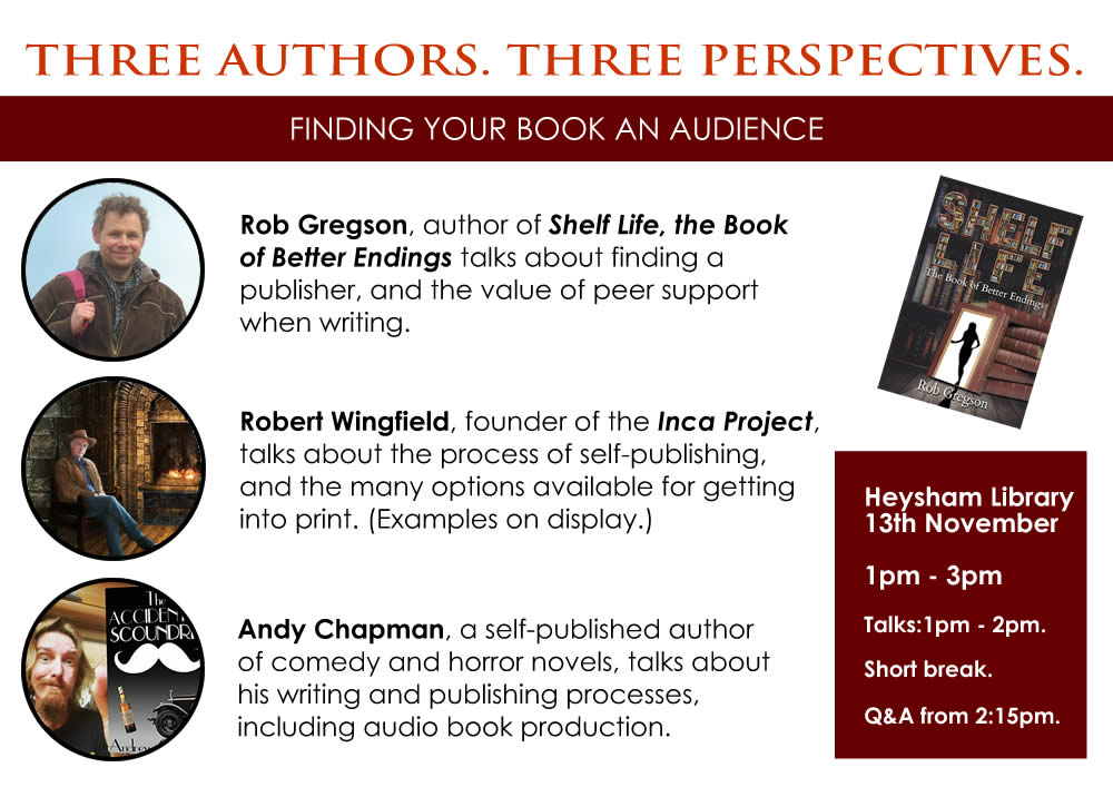 The other speakers will be Robert Wingfield, founder of the INCA Project, and AndyChapman, author of a number of comedy novels and, most recently, a horror entitled Shelley Town RPG.