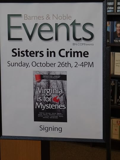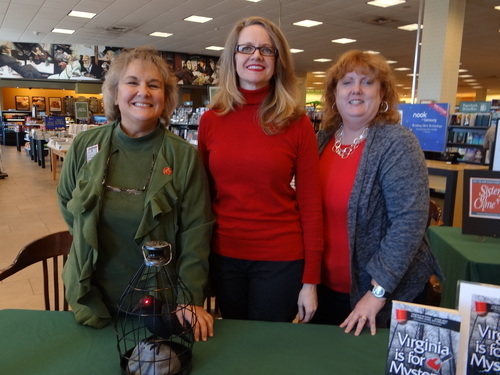 On Sunday, I signed Virginia is for Mysteries with Fiona Quinn and Rosemary Shomaker at Barnes and Noble - Chesterfield Towne Center. We enjoyed talking to everyone who came out to see us. We celebrated Mystery month with Rosemary's raven.