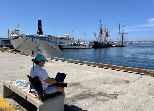 I like to post photos of me in my mobile office on my social media. Last week I was at San Diego Bay enjoying a necessary summer breeze next to the Maritime Museum.