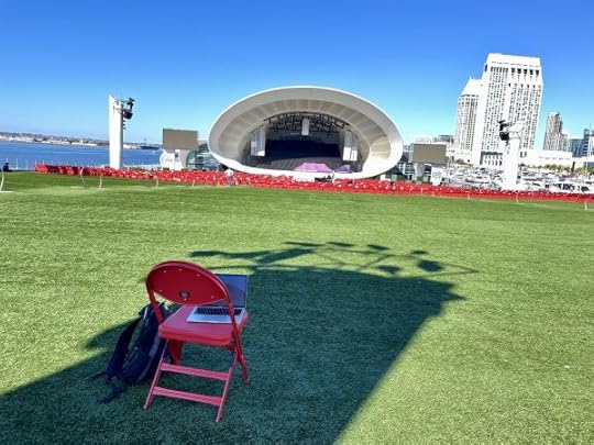I had a spectacular #MobileEditing office today! I set myself up at the Rady Shell at San Diego Bay during the San Diego Symphony’s open rehearsals. I edited a picture book AND revised two chapters of my own WIP.
