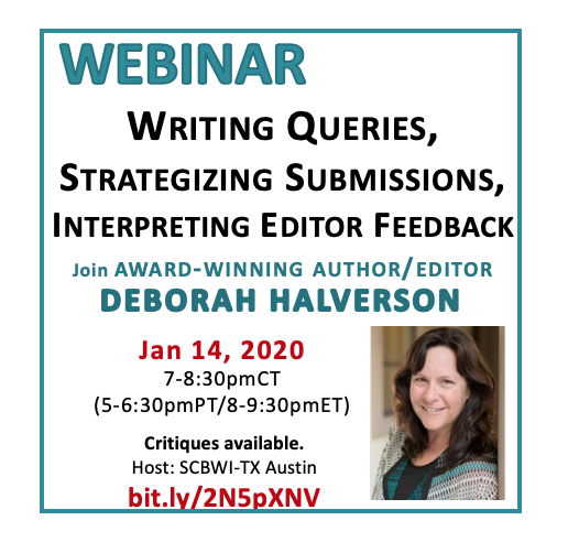 I’m excited! SCBWI-Austin invited me to present a submissions webinar as we settle into the new year with resolutions and recommitment. It’s called “Writing Queries, Strategizing Submissions, and Interpreting Editorial Feedback“