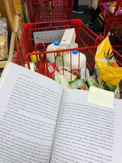I’ve recently been working to re-establish my long-abandoned habit of taking a physical book EVERYWHERE, even tucking it into my grocery bag to read while in the checkout line. Like many book lovers, as a kid I’d walk to school with an open book in my hands, never once tripping as I read. I imagined inventing a device much like a headband with an extension on the front that would hold the book open in front of my eyes to free up my hands for carrying my lunch box and an open umbrella on drizzly days. What happened? Smart phones, that’s what.