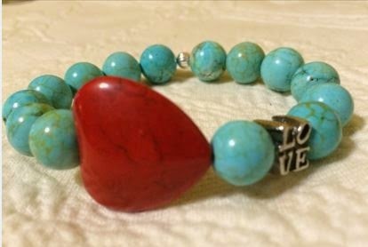 To enter, all you have to do is like my Lizabeth Scott page and share this on your Facebook wall for a chance to win a beautiful turquoise and red coral heart bracelet.