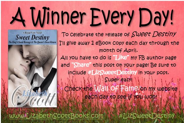 SWEET DESTINY QUIZ CONTEST1. “LIKE” this page: https://www.facebook.com/LizabethScot.... “SHARE” this post.3. COMMENT below.4. SUBSCRIBE: http://www.lizabethscottbooks.com