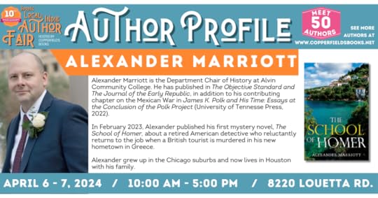 I will be at the amazing Local & Independent Author Fair on April 6-7, 2024, hosted by Copperfield’s Books, signing copies of The School of Homer and talking to readers about the book. Check it out!