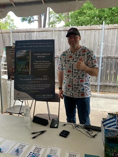 Jeffrey Siger (At Any Cost, 2024 – Kaldis #13) and Alexander Marriott (The School of Homer, 2023) signed books and discussed writing mysteries–especially those set in Greece. It was a lovely event. It was an honor to be at Murder by the Book, Houston’s premier mystery bookstore. We thank Mr. Siger for his encouragement, generosity, and kindness!