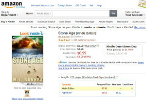 By listing STONE AGE on Kindle’s Countdown Deals, I am bringing a lot more exposure to the book in ways I couldn’t have done even if I had a large publisher’s pocket book, which I don’t.