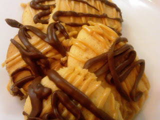 2 large eggs1/2 teaspoon vanilla extract Icing: 1 1/2 cups confectioners' sugar, divided3 1/2 tablespoons low-fat milk, divided2 tablespoons half and half (I used lowfat), divided3 tablespoons creamy peanut butter1 ounce chocolate chips1 teaspoon unsweetened cocoa