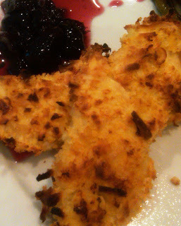 Baked Coconut Chicken Fingers(note: the chicken marinates for an hour so leave time for that)