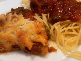 This was so darn good, I had THREE (!!) servings of the eggplant parm. I couldn't keep myself away from it, LOL. DH is on his second helping. I'm thinking he'll end up having three too :-)
