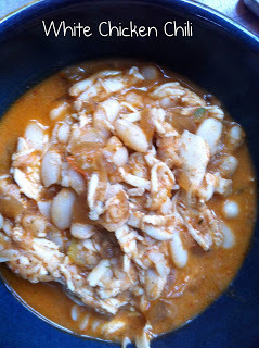 This is one of my favorite dinners. I usually poach extra chicken when I'm making stock or a soup or something else that requires cooked chicken, then make this quick dinner on a busy weekday. When I made it this week, I used fresh peppers and jalapenos from the garden, instead of the pickled jalapeno. It made it hotter, for sure, but still delicious! :-) White Chicken Chili2 tablespoons olive oil1 cup onions, chopped