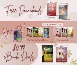 So when two of my books, Chain of Mercy and A Beautiful Mess, eclipsed 1000 in ratings/reviews on Amazon, I figured that was worth a celebration! And that means a lot of goodies for my readers as a Thank You for reading, rating, and reviewing!