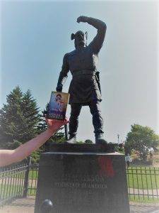 The statue proclaims that Erikson discovered America in 1000 AD.