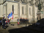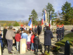 As the hour of 11 am struck, reenacting the moment when peace finally came to France in 1918 after four dreadful years of war, the church bells began to ring out with deep, rich, joyous tones: in our village square, in Paris, and indeed in every little village and town in France. Then the volunteer firefighters marched through the streets of the village, leading the way to the war memorial for the reading of the names. This year the children of the village were quite involved in the ceremony: several of them read aloud letters that had been written by soldiers in the trenches back home to their loved ones. One letter was quite openly bitter about the old men who sat in offices directing a conflict in which so many young men had died–needlessly. Then the children led the attendees in singing la Marseillaise; and from there we all proceeded to the cemetery where flowers were laid at the memorial in the part of the cemetery dedicated to the war dead.