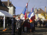 I was not able to attend that event, but as one of only two Americans in Essoyes, I was honored to be invited by Mayor Alain Cintrat to attend a ceremony the following day, right here in Essoyes, to help welcome these very special visitors to our town. The simple reception that the Mayor had arranged for them was perfect in every detail: fresh flowers adorned a table that featured a centerpiece with the French and American flags; the Mayor gave a very touching speech welcoming our visitors, and my friend Desirée (the other American essoyenne), who had been asked to translate the speech into English, delivered it in English after the Mayor had given his welcome in French. Desirée has kindly shared the text with me so that I could quote from it here: