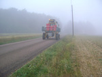 This year the vendange began for most of the vignerons around here on or about August 27: quite early, but it has been quite early for the past few years. (When I participated in the vendange in 1978 it started in early October.) By September 7 it was over for everyone around here as far as I can tell. One of the signs of this was the huge trucks carrying baskets full of grapes that came barreling down the road that goes by our house fairly early on Friday afternoon. They were coming back from the vineyards, honking their horns in the manner of a wedding party, or perhaps a better analogy in this case would be to say in the manner of cowboys shouting “Yee-haw!” and “Yip-yip-yippee!!!”
