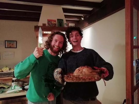 My kids, and their friends, arriving for Thanksgiving with turkey, escargot, pecan pie and other delights …Well it is good to be back to typing with two hands!
