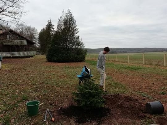 Initially we had planned to bring the little live tree we bought inside, decorate it, and then plant it after Christmas. But once we had it sitting outside where it could benefit from the sunlight and rain, we didn’t have the heart to do that. It was clear that our little tree was going to be happiest outside: and so we left it there for a few days near the bird feeder, until one of my sons was able to find just the right spot, and the time to plant it. And so before the old year was gone, thanks to Sam, we had a new tree planted. It was a good feeling!
