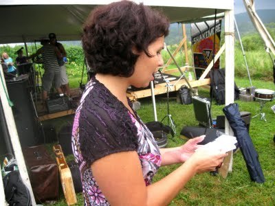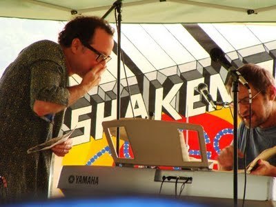 We, like many of the groups scheduled earlier when the torrential downpours were happening, screwed up the schedule by not being assembled on time. In fact, I had figured we weren't even going to get to play, not being able to get in touch with Pope and the hours advancing. So I had put on my seersucker suit and was kicking back with a lemonade, thinking "Enough electric waves of anxiety, it's Tourist Time!"