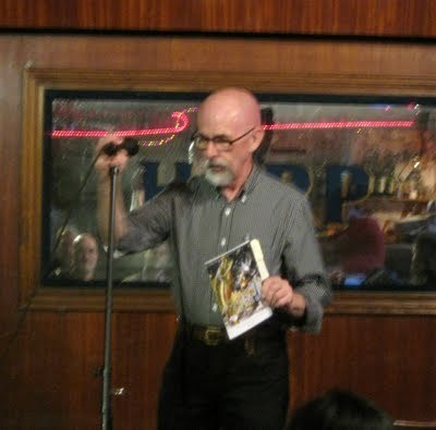 A good deal of the songs seemed to come from "From the Witchwood", which we just happened to have at Normal's and which is now playing on my car stereo. Strong songwriting mixing in British history and olde folk with sitar and occasional funky organ flourishes. On stage this night it was just three acoustic guitarists, but man Dave Lambert, the gent above who looked like he was weeping when he sang, could really play. Did some very nice bird sounds also with his strings and without effects pedals. Also, having heard "From the Witchwood" about three times now since the show, I have to say that Dave Cousins' voice has really remained strong. Or at least remained at a high level. I mean, he's not Van Morrison or Colin Blunstone, but his voice serves well his tales of working underclass English folk.