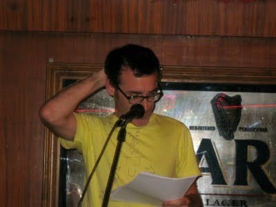 Jason Baldinger has been writing for over twenty years, he just recently got around to performing it publicly. He's been published in The New Yinzer and has a split book of poetry with Jerome Crooks available now from Six Gallery Press. You can catch his bands House of Assassins and the Skirt Tasters at irregular intervals around Pittsburgh.