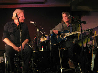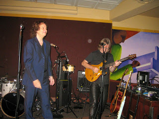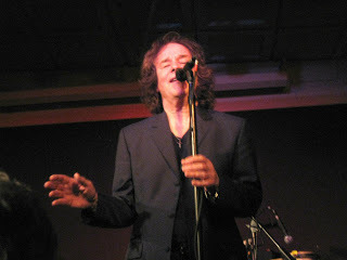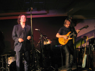 We speak now of Zombies, though, and the '60s and love. Above is Colin Blunstone with the guitarist Tom Toomey. Sadly the lights have come on. Announcing the end of the magic night and revealing that at the peak of Niece Shredder's ecstasy during the set, when they played "Can't Nobody Love You", which she wants played at her wedding, she had lost control and put her shrimp fork through both eyes of Charlie's wife, her last whimpering cries for help smothered by the comforting aural blanket of Zombie sounds.