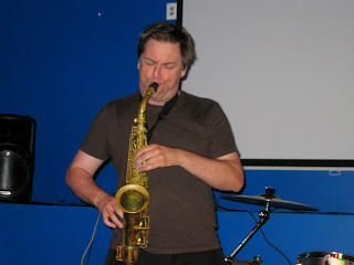 Pictured above are Sir Nathan Bell, whose recent album "Colors" is one of my favorite releases of the last year (and has some great cello work by Kate Porter) and Michael Lambright and Justin of Madagascar. Nathan played with Liz Downing on this night as Spacecrafts and Insects and the chemistry between the two them is spellbinding - even in a sweating, buzzing beehive.