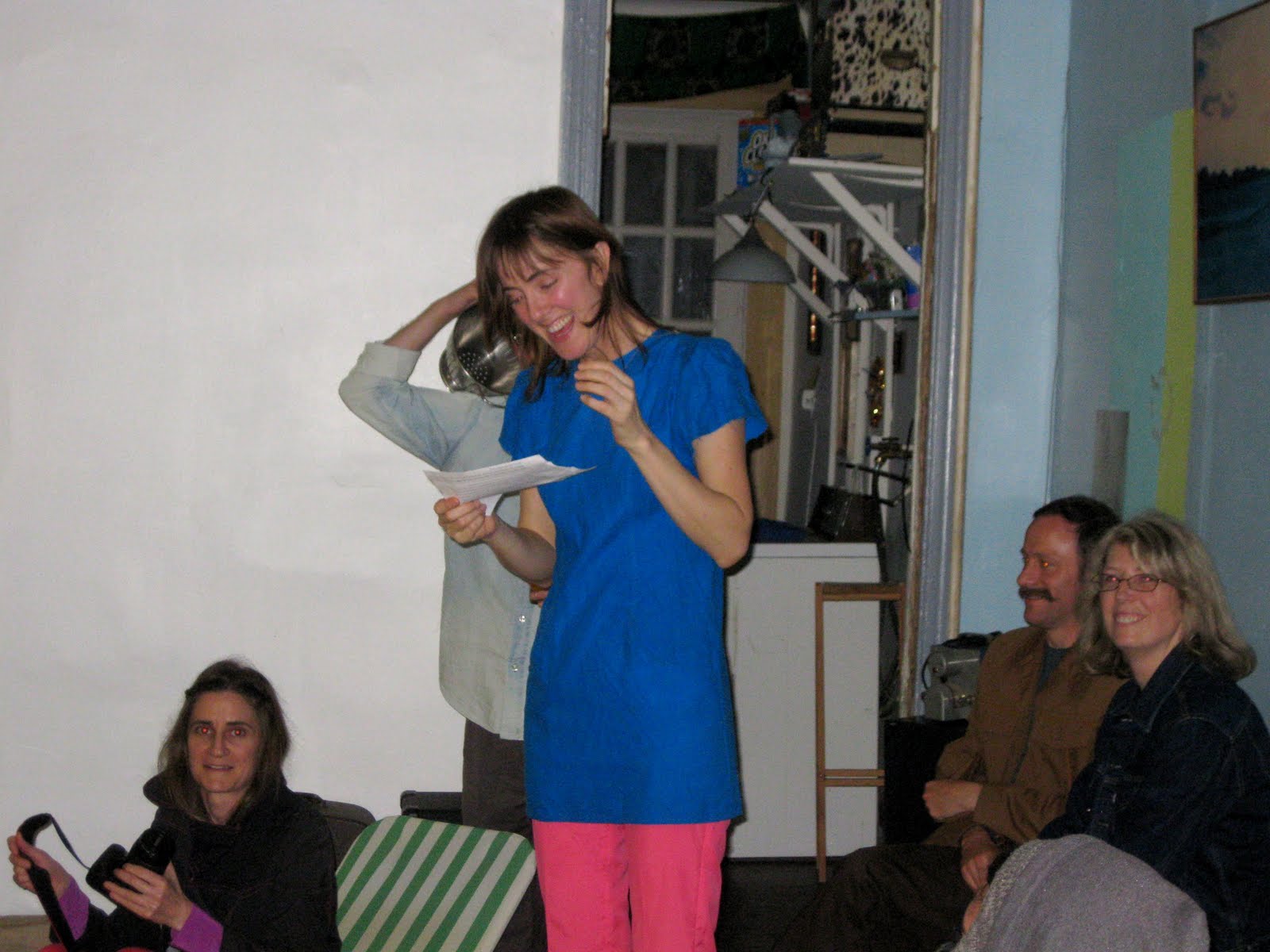 Yowzah, yowzah, yowzah what a weekend last weekend was. Great old favorite friends dropping from the skies like paratroopers with chocolates and well-trained French can-can dancers. First got word that Courtney "Camel" McCullough was flying in for a "Baltimore bachelor weekend" (thanks Sabra! Although it would have been great to see you, also. Reggie can man the helm), then got word that Nancy from Groovy Like a Pig and one of the co-founders of Shattered Wig Review was also popping in from Detroit. As if all those sweet surprises weren't enough for one weekend Chris Mason, one of Baltimore's most seasoned and open-hearted experimental poets was reading at Stephanie Barber's Salon and he asked me to be his date. It is a neighborhood that sports about as many pieces of plywood as windows and Chris was afraid it might send him spiraling back to his early dark days of alley crawling in search for a long moist piece of jimson weed. I would be his puritan escort, leaving my thong at home and bringing along my King James.