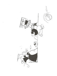 Just as regular as a clock can tick you reach up for the old pigskin high on a dusty shelf as the sun is setting and the light is becoming gray and pointillist and your hand brushes an old Halloween mask. You pick up the mask, but it's slippery and brittle at the same time and you realize it's an actual face. As you drop it and collapse to your knees little songbirds jet up from the wrinkly folds and warble to you with outdated pre-recorded answering machine voices. Your mother calls to you downstairs that dinner's ready, but she's been dead for five years now.