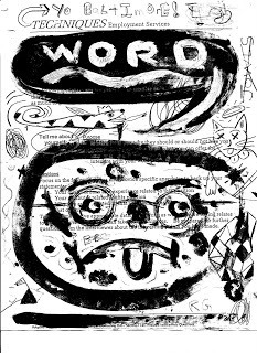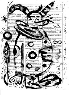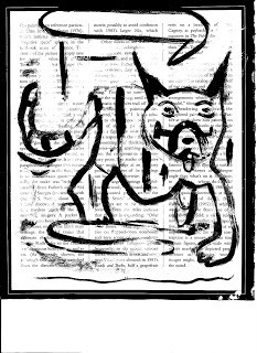These black and white pieces, which are pen and brown paint on what seem to be elementary school project papers, will be in Shattered Wig Review #28, but you can go to his website to see some of his stuff in full color glory: