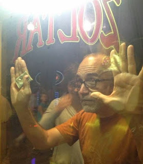 (John "Lucky Charms" Eaton, who has been trapped inside the Zoltar Fortune Teller booth on Coney Island since the last writers group gathering.)