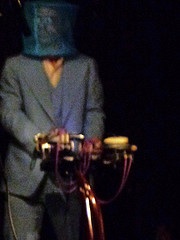 And through the acts of the great folks channeling Blaster and his work, once again it was made clear how fantastic, clear and distinctive his voice was, because it rang out chillingly and unmistakably like the creepy intro to the old Shadow radio show through John Eaton, Batworth, Megan McShea reading the gut busting recommendation Blaster had written for her to gain entry into a writer's retreat ("I wouldn't want to go anywhere where they didn't get Blaster," said Megan), Francis Poole, ex-Baltimorean and former Normal's star Courtney McCullough, who was the one who found Blaster post-stroke and convinced doctor hating Blaster to go to the hospital, singing George Jones' "The King is Gone"Catherine Bennett, John M. Bennett, Lauren and Gerald Ross' Ling Master play (wherein Gerald nailed the Ling Master's deranged nerdy secret master voice so well that I still belly laugh just thinking of it), The Dirty Dozen's new Orleans' style funeral march by way of Martian Harry Partch textured sound glory that built in exhilarating manic daffiness and then closed with a quiet spinning wheel of an energy that had to come to a halt and by Laure Drogoul's enchanting olfactory Blaster seance. Who that knew him doesn't have strong smell associations? Newly cracked beer can foam, tin of slightly impertinent tuna, musk of scalp oil basted bop cap. -