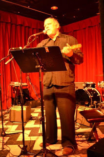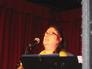Coming along about three hours into the night was Alix Tobey Southwick doing a beautiful, soothing rendition of "Tomorrow Is A Long Time" that overcame the shaky sound system with its passion. Alix, below, painted Chris as The King of Hell and Pope Croke as Pan in the ladies' room of The Club Charles long ago and these two friends and Baltimore icons left the Earth within months of each other.