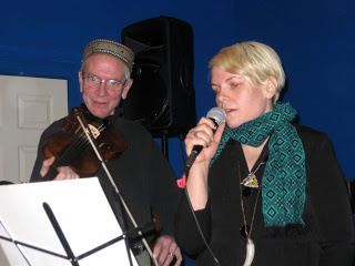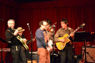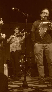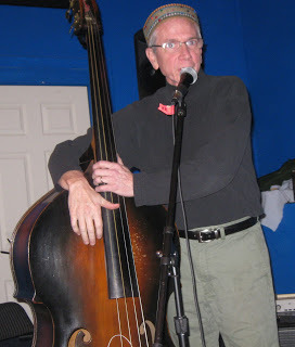 Chris' activity in the poetry world spanned from the '70s through the first decade of the 21st Century and he was well loved, so the night filled and stretched on with people wanting to pay his generous spirit homage. I was happy to be in on it and got to do double duty, singing with Don Peyton's Tear Stained Bibles (above), which included my nephew Geff on fiddle and mandolin (below).
