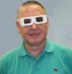 (Fell Swoop publisher and poet Joel Dailey wearing the NASA manufactured glasses that enable him to see up to five feet in front of him and two to three feet behind)