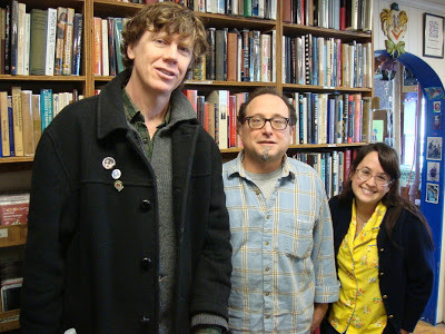 At Normal's Bargain Cobbley World, we've had some fun visitors over the years - Chris Rock making that president movie - his "campaign headquarters" was one of our old slumlord's many vacant spots - and popping in to sign "Kiss my black ass, Chris Rock" in one of his books I'd put in the window one day and then buying a book on pimps we had another day; Mike Kuchar of the glorious Kuchar Brothers - visionary dwellers of the cinematic cesspool; the gentle fellow dog and serious serious bookstore loving Jeff Mangum who gave us a shout out from the stage later that night and was a blast to hang out with and then this week Sir Thurston Moore who helped introduce folks like Stockhausen and Daniel Johnston to a wider public while stretching and breaking the walls of punk rock into a wider sonic realm. Plus he's a poetry lover and writer and advocate and even plugged books by me and Blaster a few years back in Arthur. So I hold big love for him indeed.