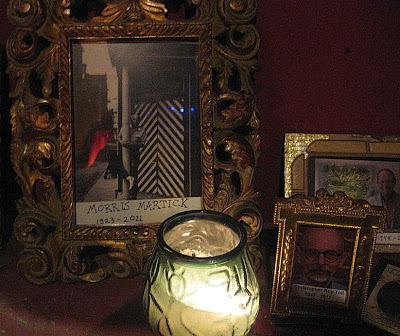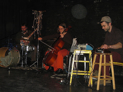 The grand finale was Saint Nathan Bell taking the stage with Kate Porter on cello and Eric Franklin on electronics. Nathan never fails to hit me down deep in my gut and this night was no exception. His interweaving with Kate's cello, a standout for me from his amazing "Colors" lp, was a particular treat. Sadly, he was having problems with his banjo strings so the set got cut slightly short, but that left folks time to move to an after party and time for me and Madame Drogoul to discuss mortality, Baltimore and the afterlife. Her altar has expanded with the grand spirits of Morris Martick and Chris Toll and we wished them a good night.
