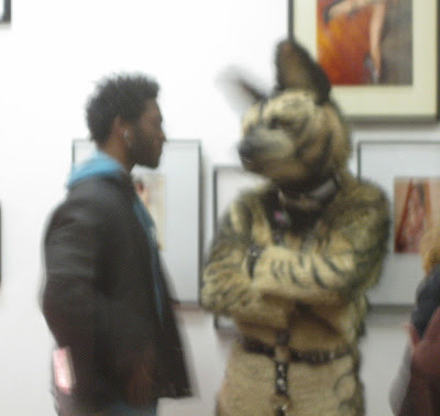 It was a fresh rollicking night from the get go since the long dormant 218 W. Saratoga building now also houses a gallery and none other than Julie "Never Saw An Event That Couldn't Be Helped By Some Bare Nips" Fisher was holding one of her wild erotic somethn' somethin' events. I even saw a blurry Plushie!