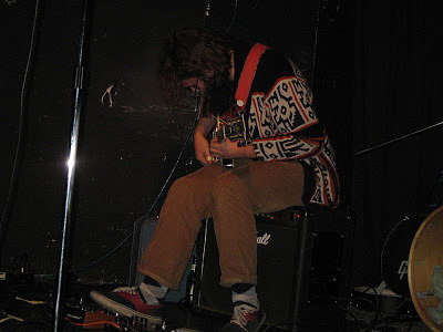After Baltimore's Greatest Living Human & Artist Laure Drogoul watered down the crowd with bar beverages during intermissions, the sublime Omoo Omoo took the stage. With only guitar and a few effects pedals he transported me once again to verdant spaces near waterfalls. Intricate and surefooted yet never predictable his compositions be. The biggest surprise of the night after seeing the Plushie upstairs rub a one legged man's bare foot with an orange Louffa was when I asked Omoo Omoo after his set if he had cds to sell and he said Yes! These hairy youngsters of New Folk don't usually get the merch together. Pick up the Omoo Omoo cd. It's very different from the live experience, more like almost new age krautrock, but awfully damn good.
