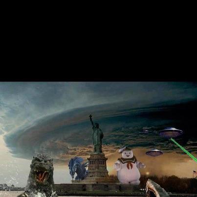 The above photograph was taken by local poet David "Sockless Joe" Beaudoin and posted on his twitter account while he was out buying a last bottle of kahlua at 6pm yesterday as Frankenstorm Sandy was unleashing some of her worst wrath. He has not been heard from since but we suspect he's taking advantage of this brutal act of nature to perform another chameleon-like identity change and will re-appear as a bouncer at some Battery Park dance club.