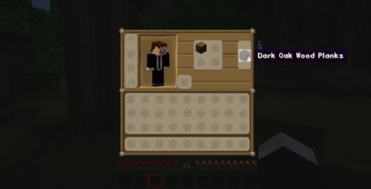 Press the e key to open your inventory and select the wood, placing it into the four boxes next to your avatar. Four oak wood planks will appear.