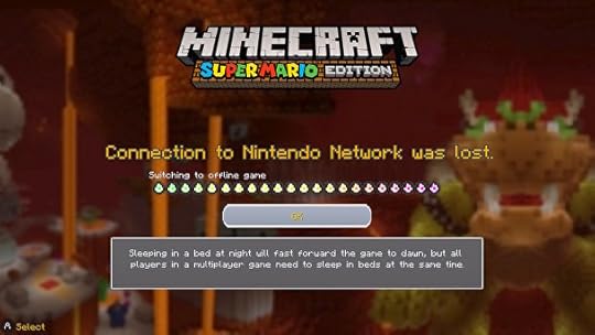 Online play is a bit odd on Minecraft Switch Edition. You can’t invite others to join your game. Instead, if you start up a new world, you can tag it as “online”. Anybody in your Friends List can see that world from their “Join” menu option if you’re online and playing. It’s pretty easy, but I do wish there were more choices for party online play. There’s also no way to communicate online: there’s no emote or simple chat system. You’re just sort of online and doing your own thing in the same world.