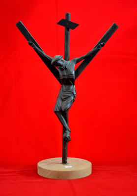 Some crosses are unusual. There is one cross in the form of a tree, with a flower. “The flower shows the blooming of the earth after the death of Jesus,” says Fr. Peter. There is another where Jesus has been portrayed as a skeleton on the cross.
