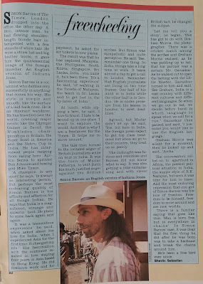 Simon Barnes of The Times, London dropped into the Sportsworld office in Calcutta the other day. A thin, intense man, he had flowing shoulder-length blond hair interspersed with a few strands of white hair. He wore a straw hat and big leather boots; it gave him the quintessential image of the foreign traveller. An English version of Indiana Jones.